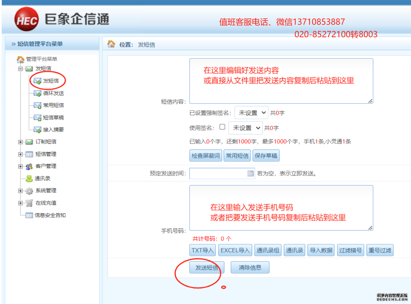 另外,如果要對很多人發布會議通知、發布資訊,應用短信群發平臺來發布是一個非常簡便的方式,登錄sms.hechina.cn免費注冊一個專用賬號后聯系巨象短信平臺客服微信13710853887開通即可。