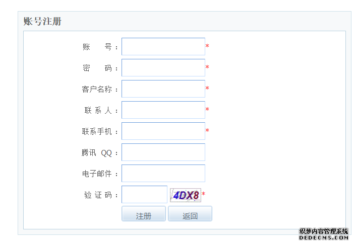 二、點擊免費注冊后會跳轉到賬戶注冊頁面,如下圖所示,輸入自編的短信賬號(建議是方便自己記憶的手機號、公司中英文簡稱、拼音)、方便記憶的密碼、公司名稱、聯系人、驗證碼,即可完成注冊。